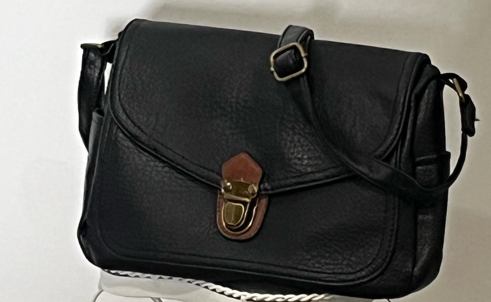 Bolso tamaño mediano de color negro con bandolera color negro ajustable