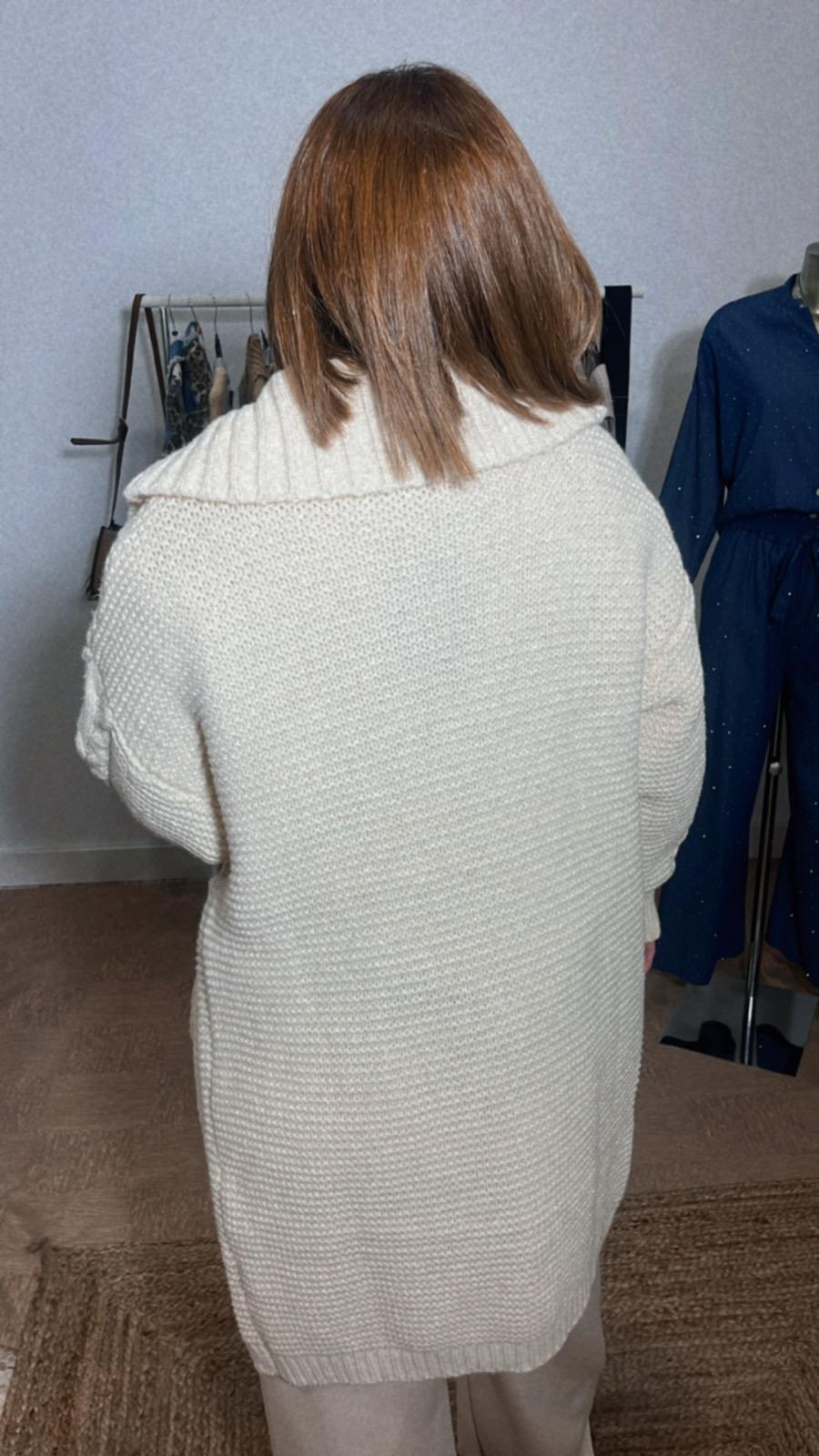 Chaqueta de lana de color beige cuello grande abotonada entera con bolsillos talla única tallaje desde la 40 hasta la 48