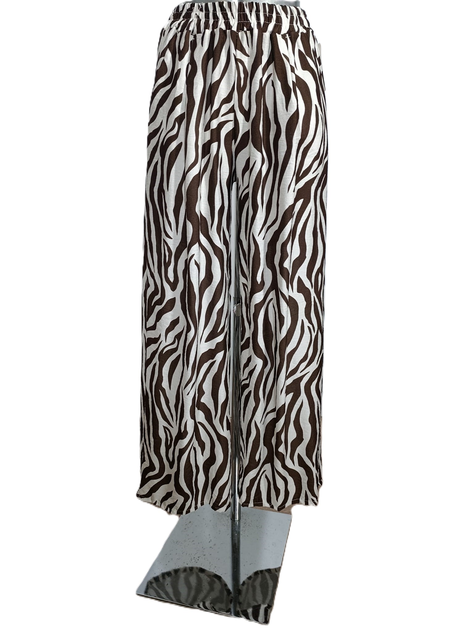 pantalón de estampado cebra con tonos beige y marrón , pantalón de pierna recta con bolsillos y cintura de goma talla única tallaje desde la S,M,L,XL