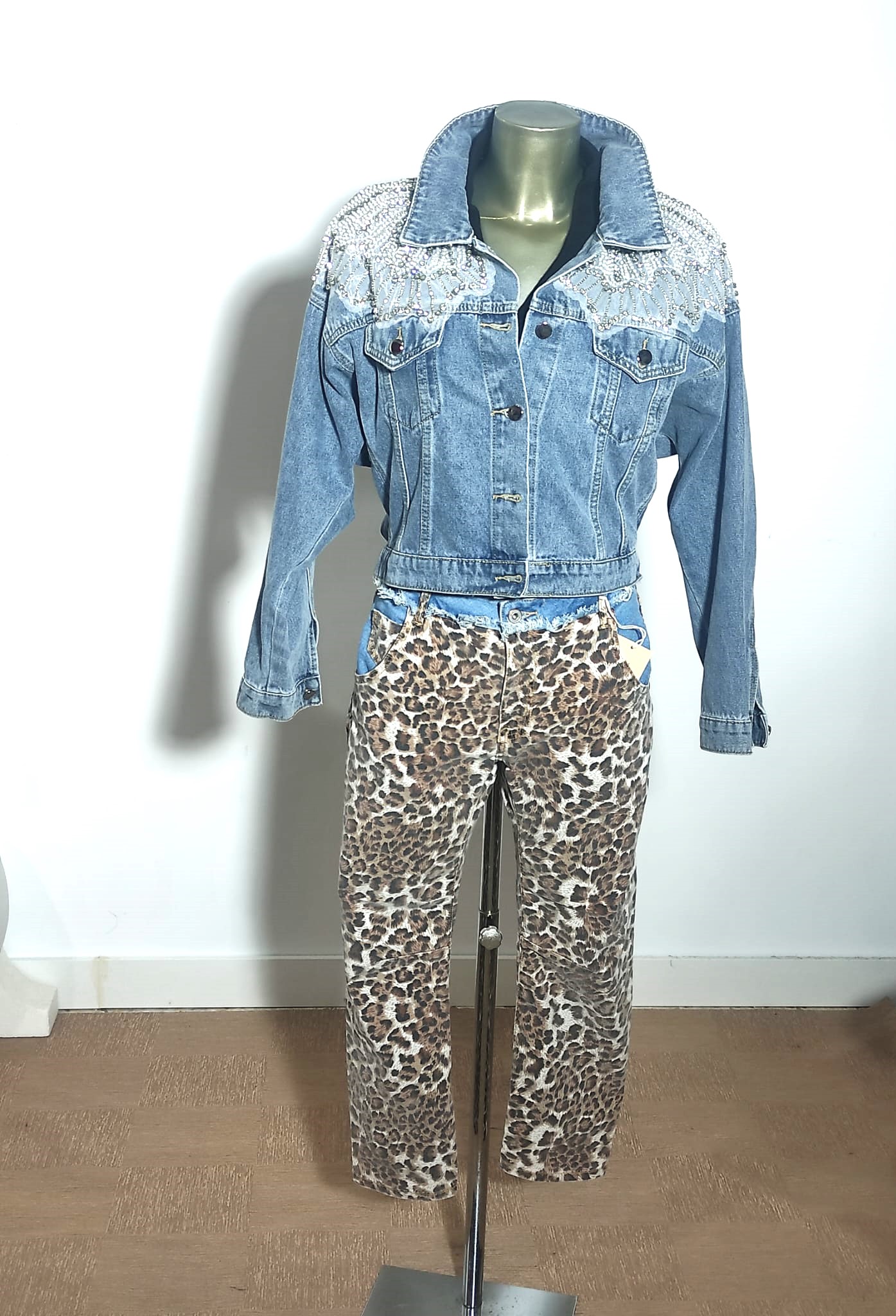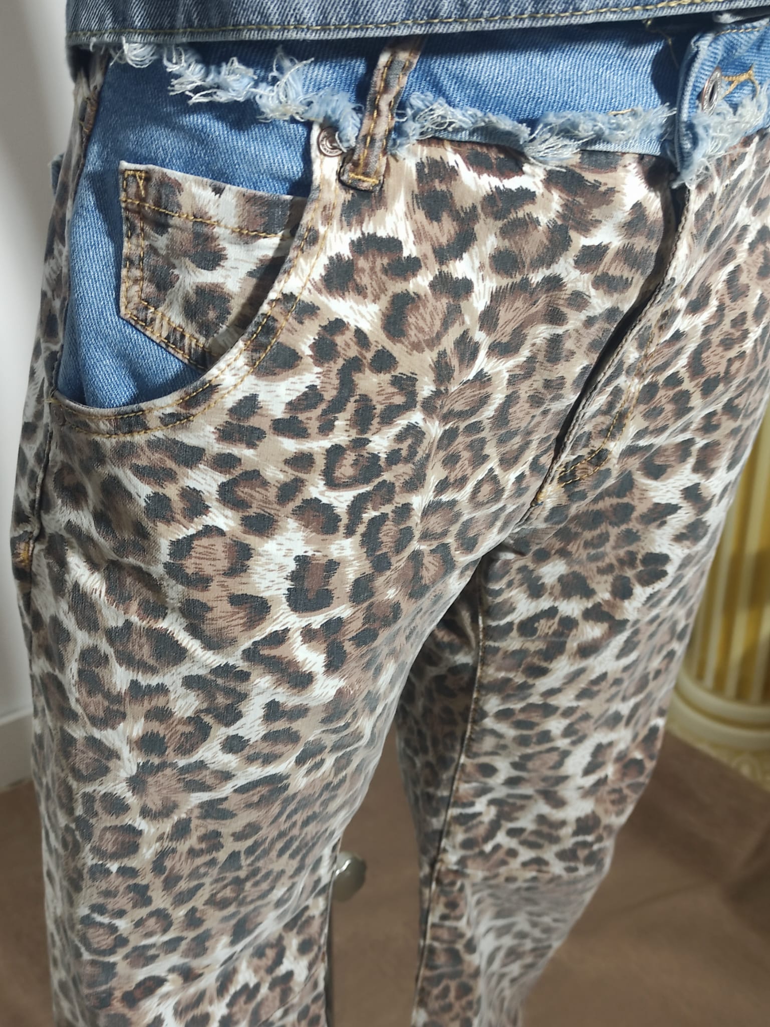 Pantalón vaquero con estampado en animal print de tejido elástico en la cintura de tiro medio tejido vaquero en azul corte de la pierna recto talla única tallaje desde la 44 46